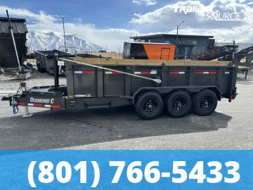 Diamond C LPT 307 7x16 24K Dump Trailer 32" Sides 14 Ply Tires, Battery, Board Brackets, D-Rings, Slide Out Ramps, Spare Mount, Spreader Gate, Tongue Box